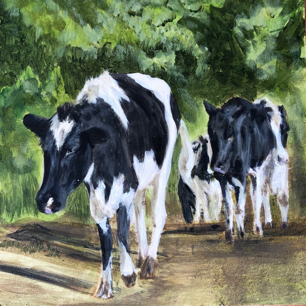 The Platform Gallery, Clitheroe hosted an exhibition of ‘Isolation Art’ in August 2020. It highlighted the work of local artists who had created Art -paintings, poetry, photographs based on 9 weekly themes. These themes inspired me to dust off my palette and paint a series of square paintings that were included in this exhibition. They were inspired by my lockdown walks and featured scenes, sky, animals and found objects.